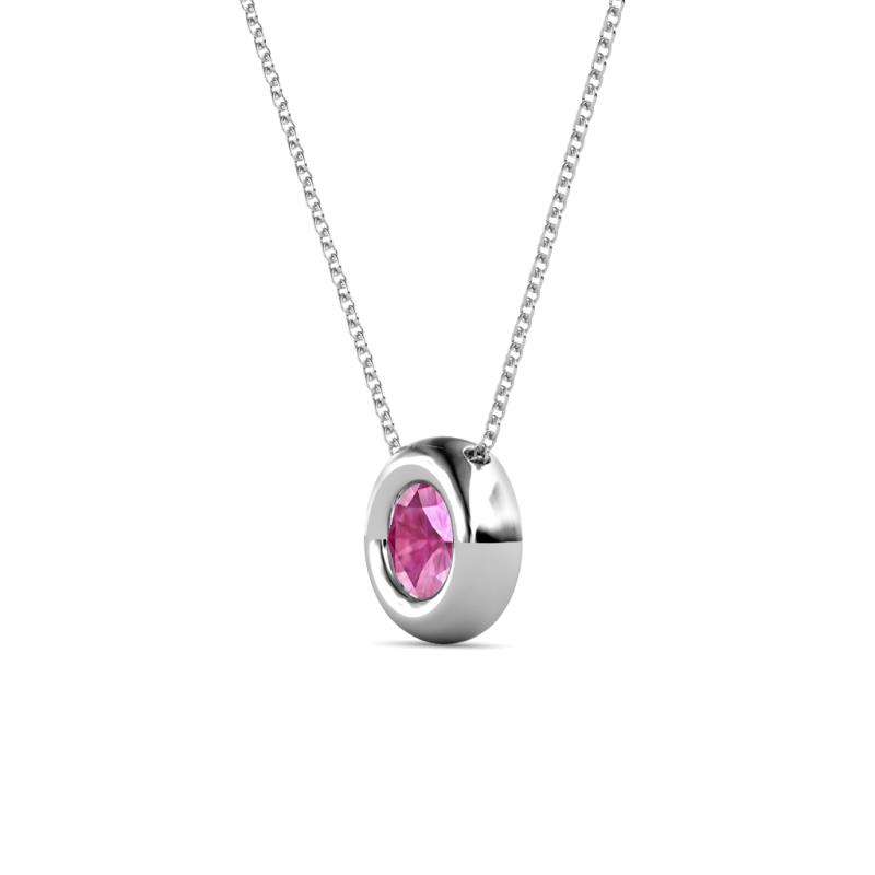 Elegant in its simplicity, the bezel setting of this 0.53 ct Solitare Pendant shows off the beauty of the Round Lab Created Pink Sapphire making any outfit more glamorous to your ensemble.
