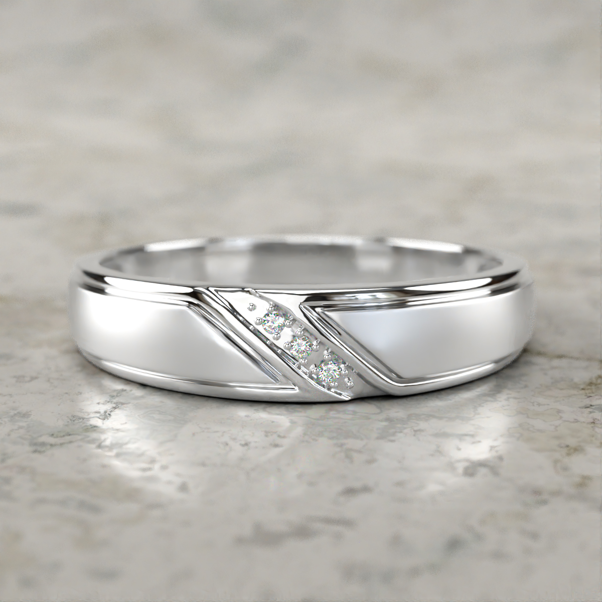 Natural Diamond Angled Brushed and Polished Finish Prong 3 Stone Men Wedding Band in Sterling Silver More Details ...