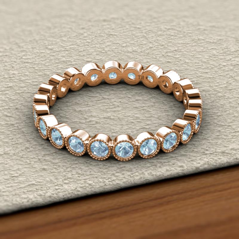 Aquamarine Bezel Set Milgrain Womens Eternity Ring Stackable 0.94 ctw* 14K Rose Gold More Details ...