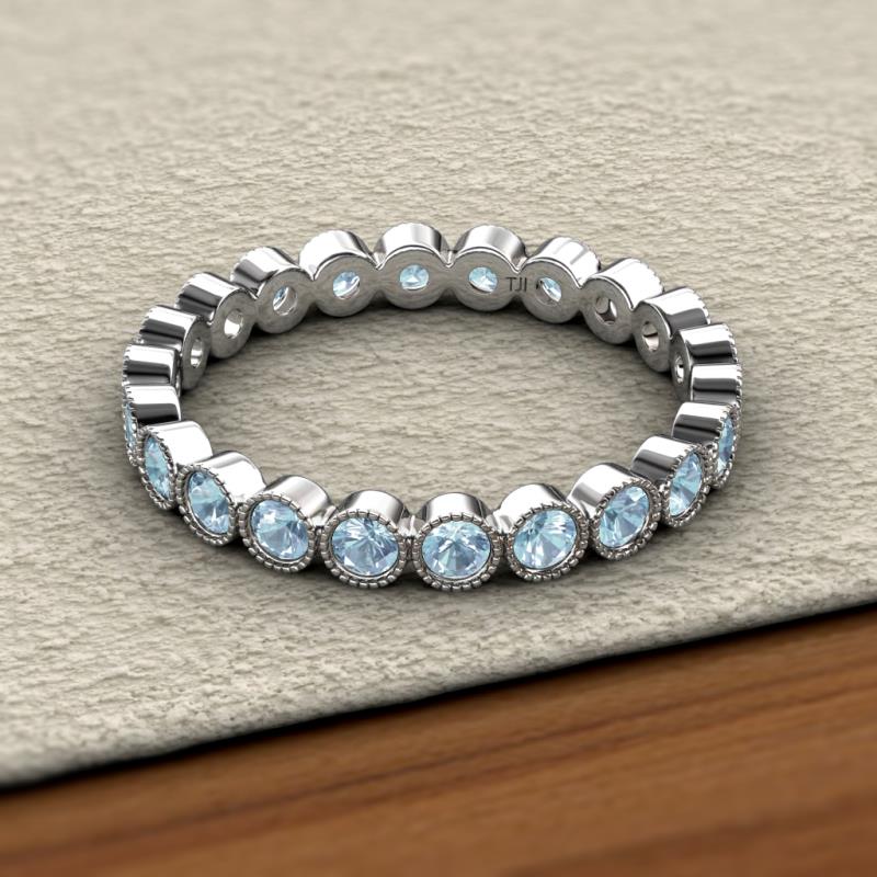 Aquamarine Bezel Set Milgrain Womens Eternity Ring Stackable 0.94 ctw* 10K White Gold More Details ...
