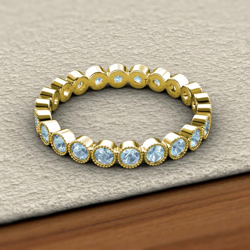 Aquamarine Bezel Set Milgrain Womens Eternity Ring Stackable 0.94 ctw* 10K Yellow Gold More Details ...