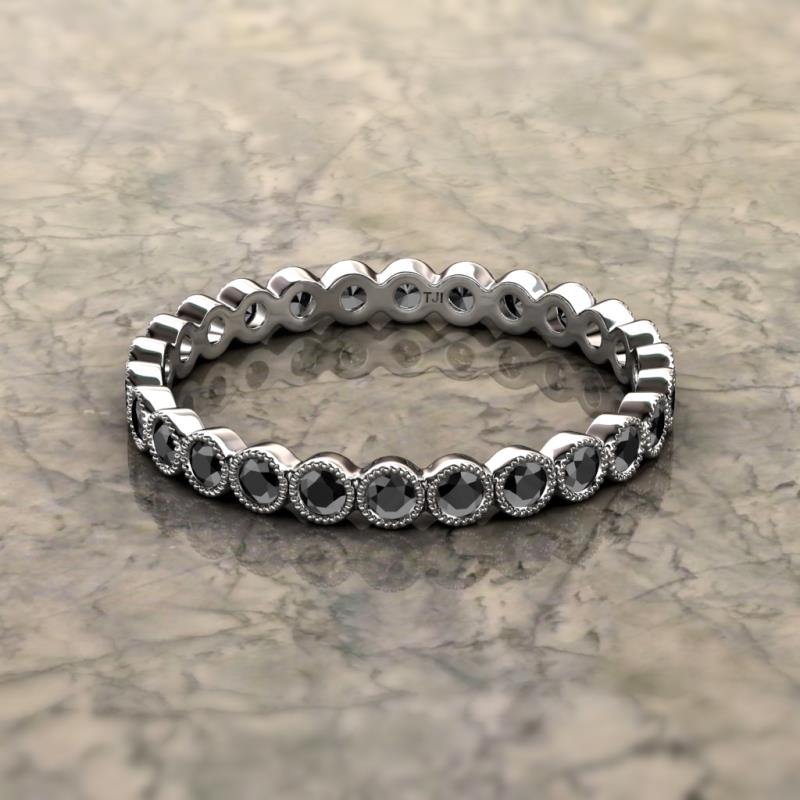 Black Diamond Bezel Set Milgrain Womens Eternity Ring Stackable 0.95 ctw* 10K White Gold More Details ...