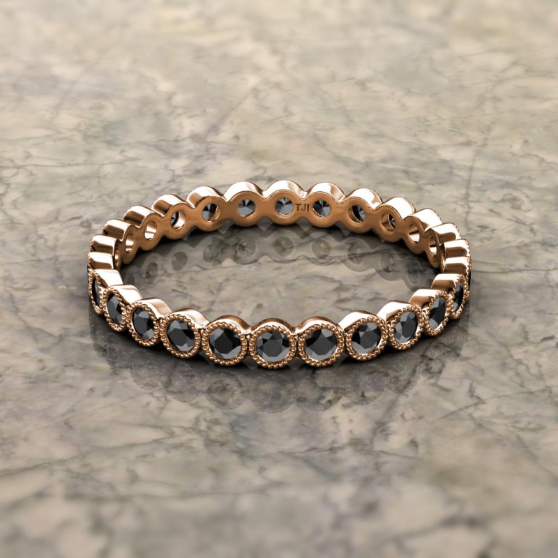 Black Diamond Bezel Set Milgrain Womens Eternity Ring Stackable 0.95 ctw* 18K Rose Gold More Details ...