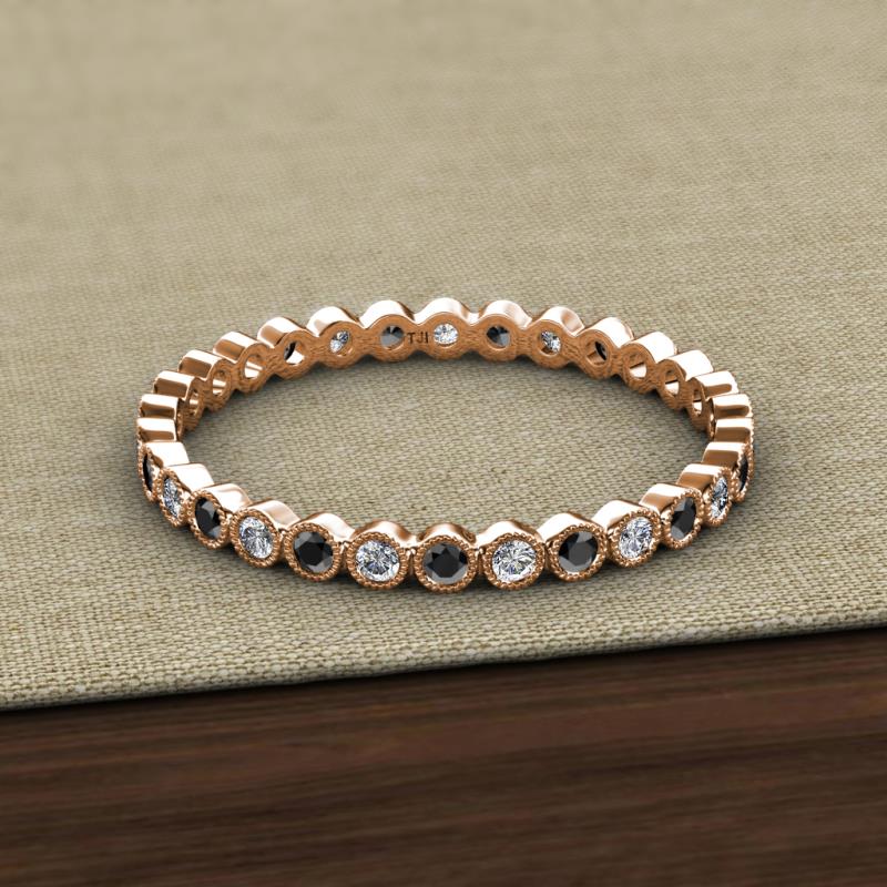 Black Diamond and Lab Grown Diamond Bezel Set Milgrain Womens Eternity Ring Stackable 0.68 ctw* 10K Rose Gold More Details ...