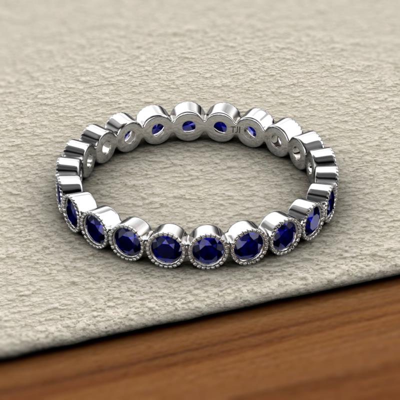 Blue Sapphire Bezel Set Milgrain Womens Eternity Ring Stackable 1.25 ctw* 10K White Gold More Details ...