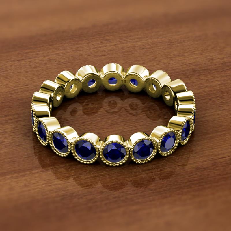 Blue Sapphire Bezel Set Milgrain Womens Eternity Ring Stackable 1.79 ctw* 18K Yellow Gold More Details ...