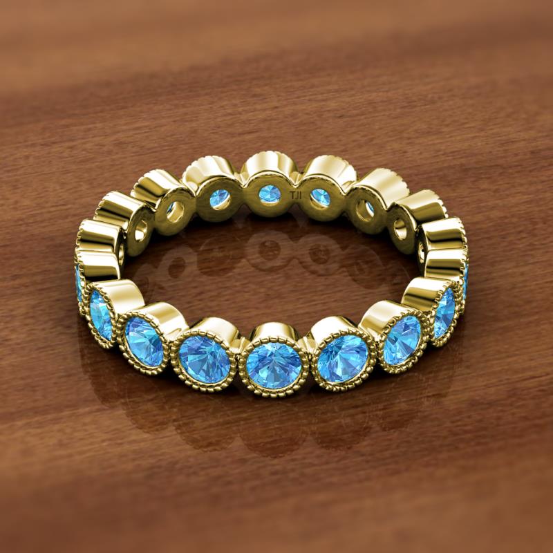 Blue Topaz Bezel Set Milgrain Womens Eternity Ring Stackable 1.53 ctw* 14K Yellow Gold More Details ...