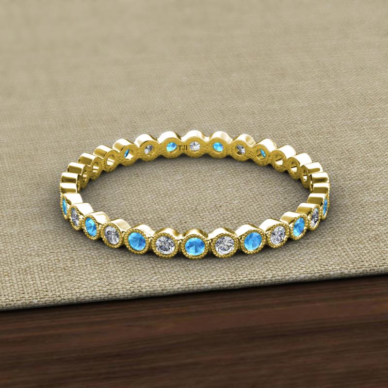Blue Topaz and Diamond Bezel Set Milgrain Womens Eternity Ring Stackable 0.61 ctw* 18K Yellow Gold More Details ...