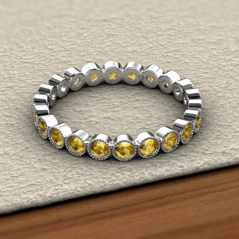 Citrine Bezel Set Milgrain Womens Eternity Ring Stackable 0.94 ctw* 18K White Gold More Details ...