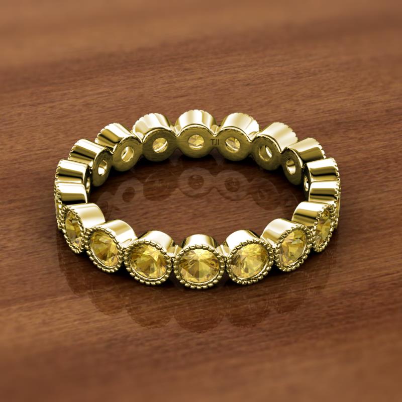 This Elegant Eternity band encircles the finger with Series of Citrine in Milgrain-Texture with Bezel Setting which symbolizes the Eternal Circle of Love and cherishes its Shimmery Look. *As per ring size the stone and carat total weight changes.