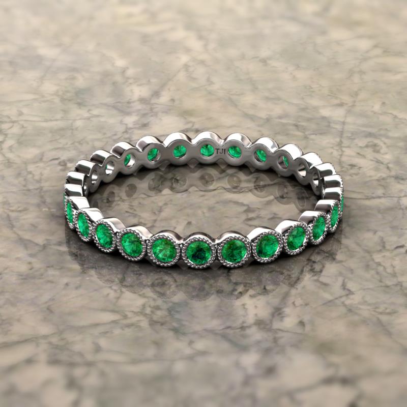 Emerald Bezel Set Milgrain Womens Eternity Ring Stackable 0.63 ctw* Sterling Silver More Details ...
