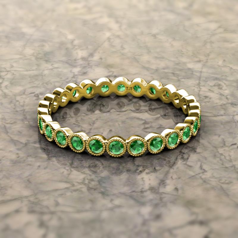 Green Garnet Bezel Set Milgrain Womens Eternity Ring Stackable 1.13 ctw* 18K Yellow Gold More Details ...