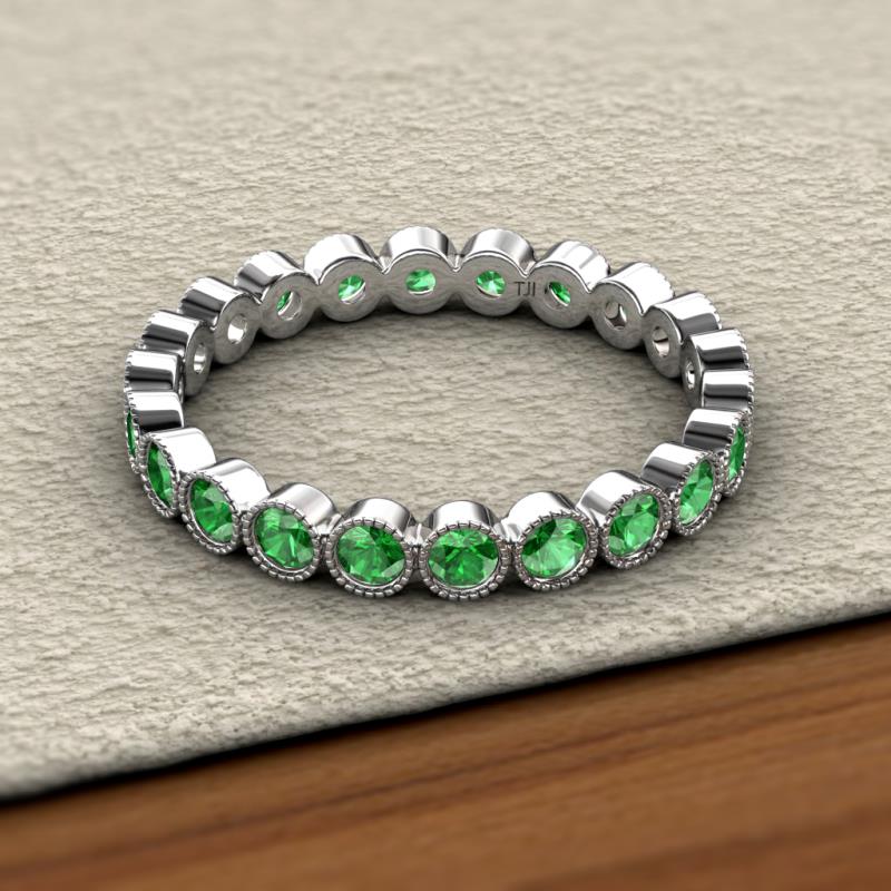 Green Garnet Bezel Set Milgrain Womens Eternity Ring Stackable 1.43 ctw* Sterling Silver More Details ...