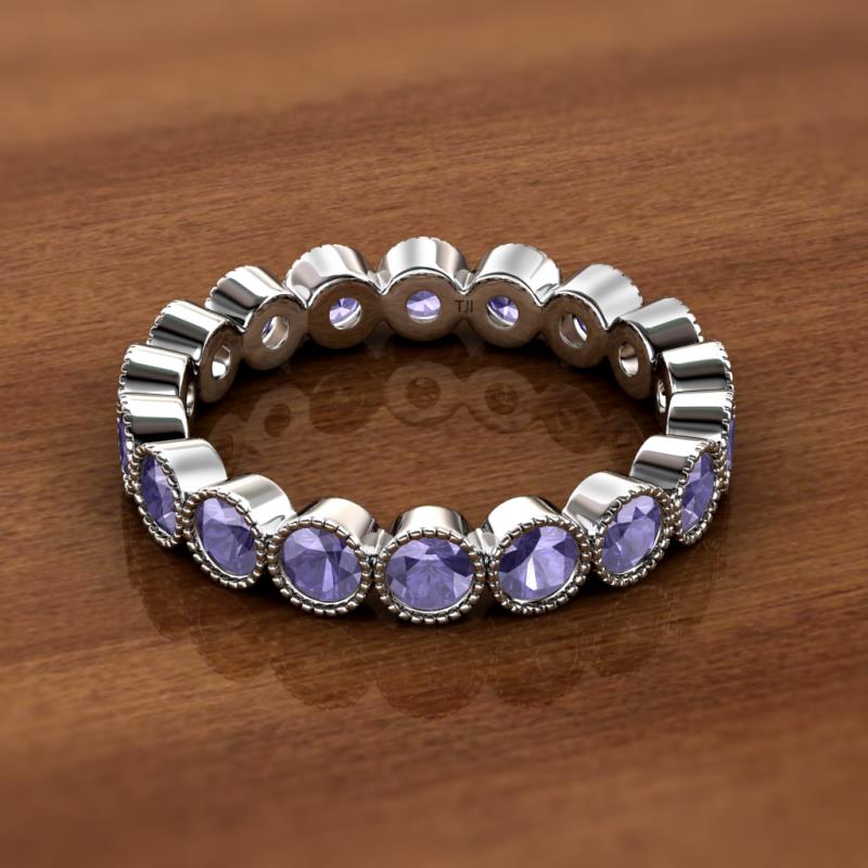 This Elegant Eternity band encircles the finger with Series of Iolite in Milgrain-Texture with Bezel Setting which symbolizes the Eternal Circle of Love and cherishes its Shimmery Look. *As per ring size the stone and carat total weight changes.