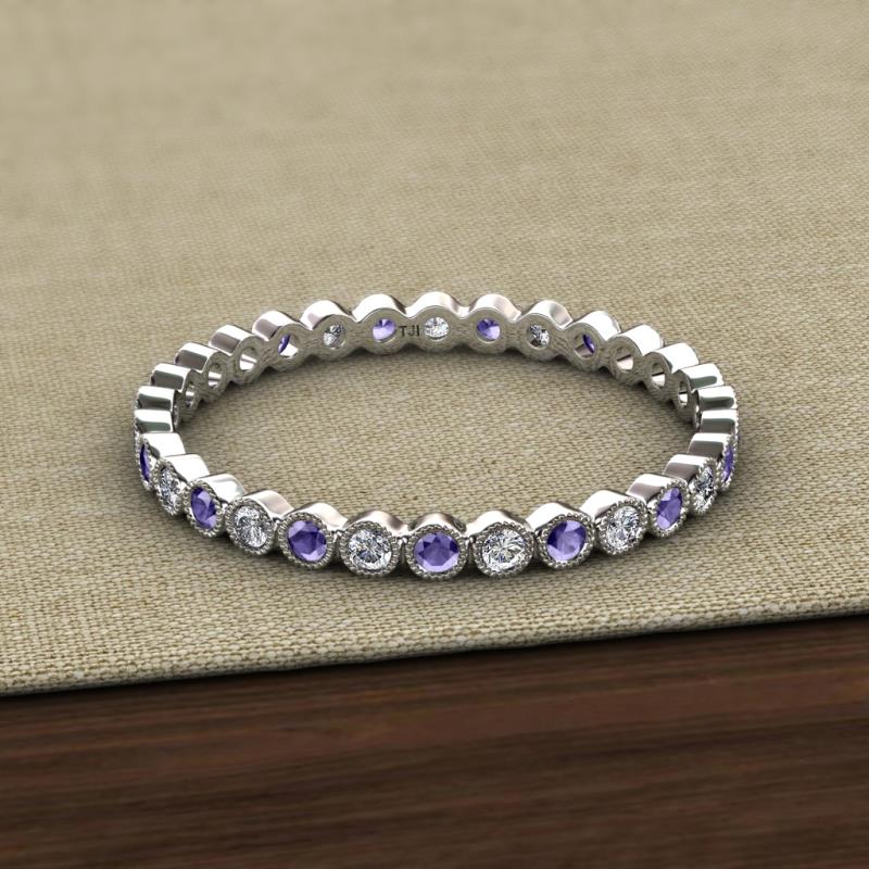Iolite and Lab Grown Diamond Bezel Set Milgrain Womens Eternity Ring Stackable 0.57 ctw* 10K White Gold More Details ...
