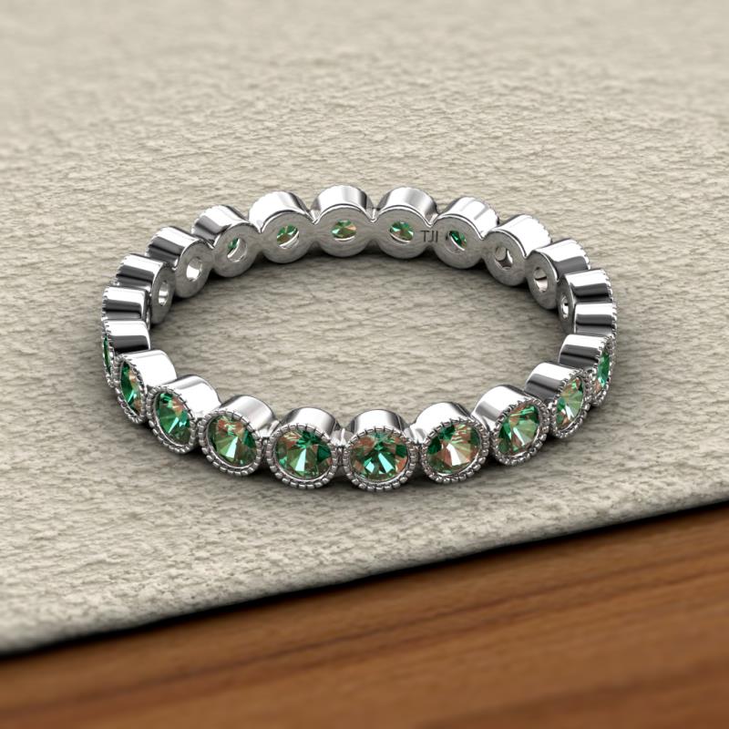 This Elegant Eternity band encircles the finger with Series of Lab Created Alexandrite in Milgrain-Texture with Bezel Setting which symbolizes the Eternal Circle of Love and cherishes its Shimmery Look. *As per ring size the stone and carat total weight changes.