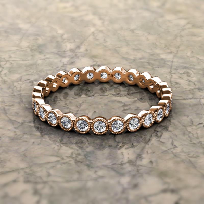 Lab Grown Diamond Bezel Set Milgrain Womens Eternity Ring Stackable 0.90 ctw* 10K Rose Gold More Details ...