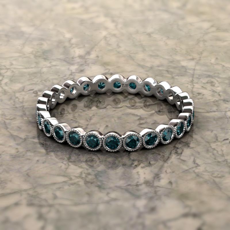 London Blue Topaz Bezel Set Milgrain Womens Eternity Ring Stackable 0.90 ctw* 10K White Gold More Details ...