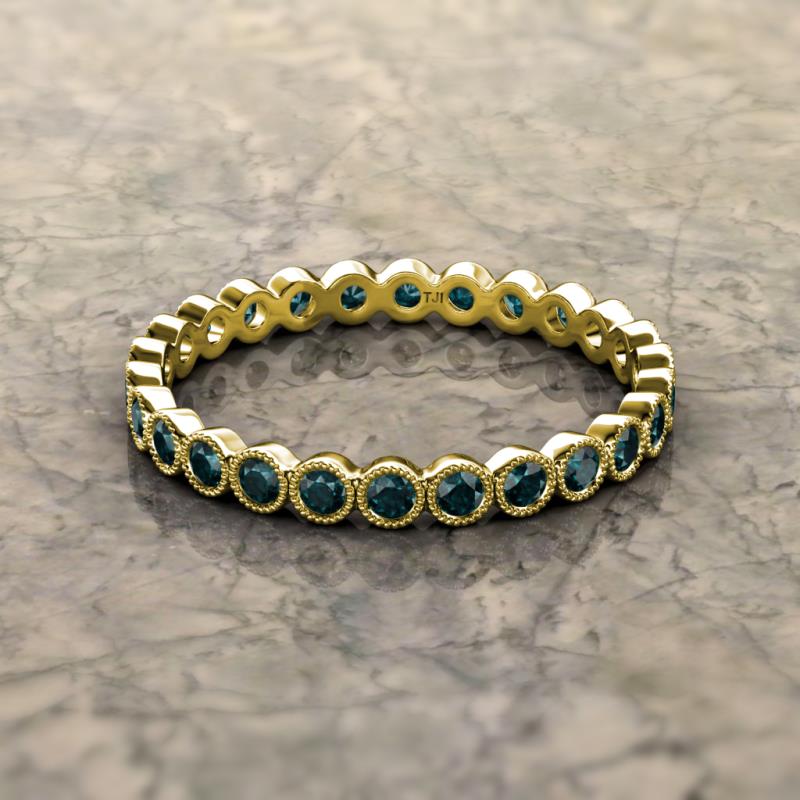 London Blue Topaz Bezel Set Milgrain Womens Eternity Ring Stackable 0.90 ctw* 18K Yellow Gold More Details ...