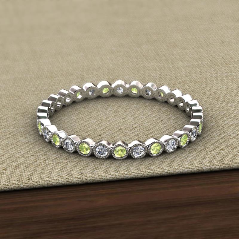 Peridot and Diamond Bezel Set Milgrain Womens Eternity Ring Stackable 0.73 ctw* Sterling Silver More Details ...