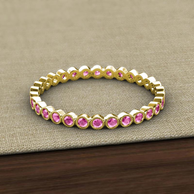 Pink Sapphire Bezel Set Milgrain Womens Eternity Ring Stackable 0.69 ctw* 10K Yellow Gold More Details ...