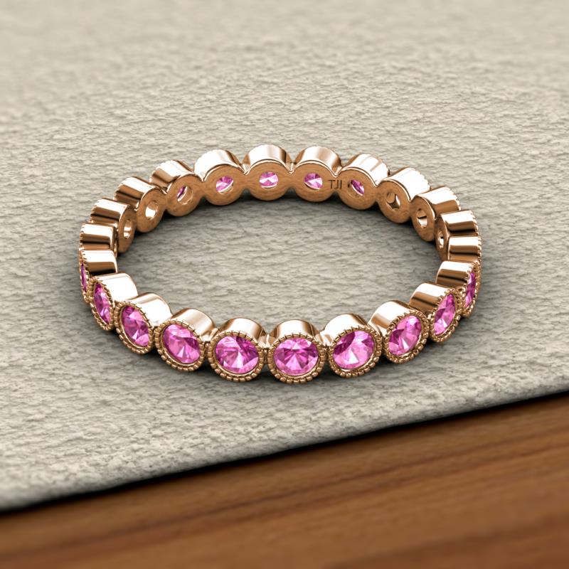 Pink Sapphire Bezel Set Milgrain Womens Eternity Ring Stackable 1.25 ctw* 10K Rose Gold More Details ...