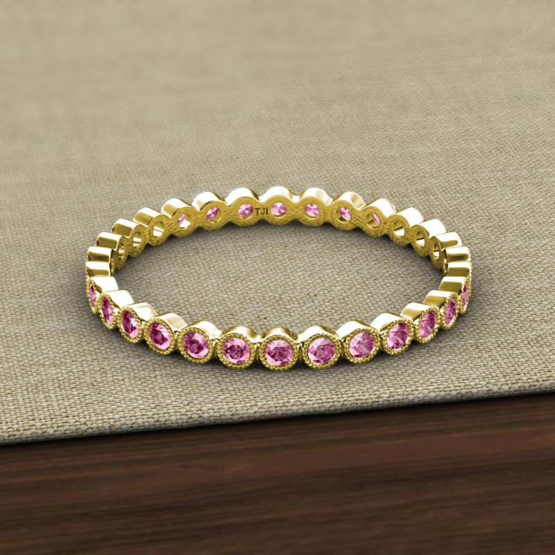 Pink Tourmaline Bezel Set Milgrain Womens Eternity Ring Stackable 0.48 ctw* 10K Yellow Gold More Details ...