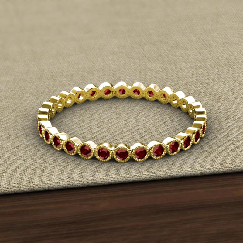 Red Garnet Bezel Set Milgrain Womens Eternity Ring Stackable 0.81 ctw* 14K Yellow Gold More Details ...