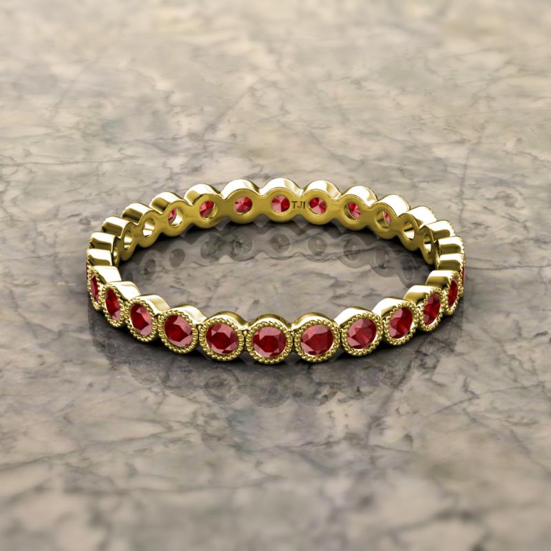 Red Garnet Bezel Set Milgrain Womens Eternity Ring Stackable 1.13 ctw* 14K Yellow Gold More Details ...