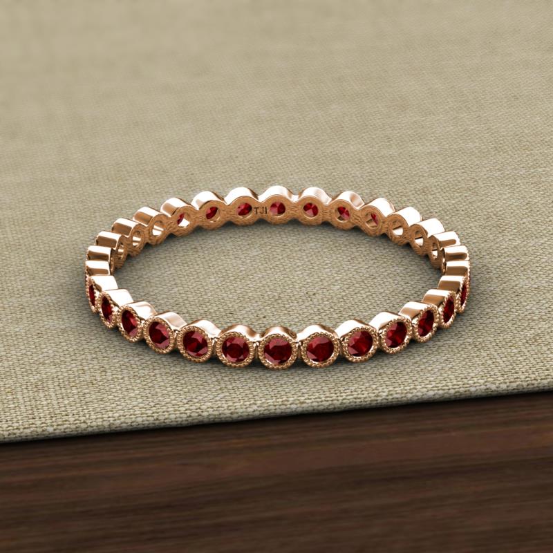 Red Garnet Bezel Set Milgrain Womens Eternity Ring Stackable 0.81 ctw* 10K Rose Gold More Details ...