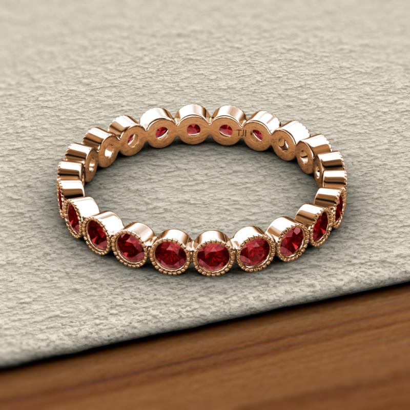 Red Garnet Bezel Set Milgrain Womens Eternity Ring Stackable 1.43 ctw* 10K Rose Gold More Details ...