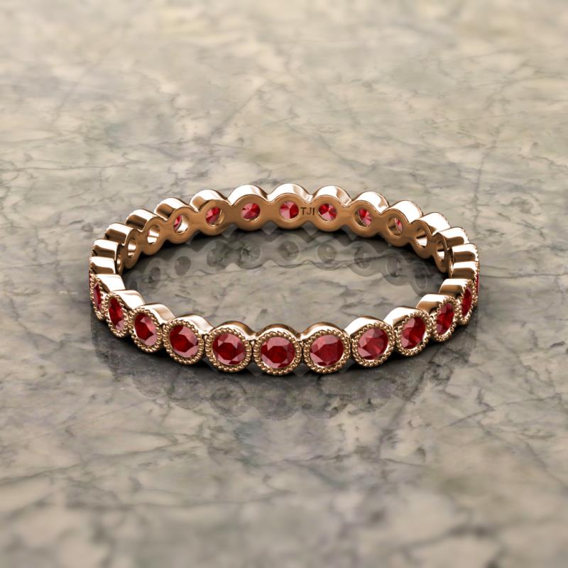 Red Garnet Bezel Set Milgrain Womens Eternity Ring Stackable 1.13 ctw* 10K Rose Gold More Details ...