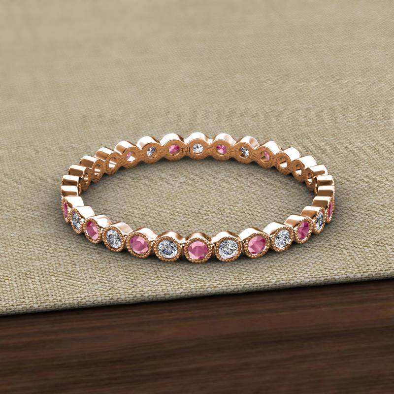 Rhodolite Garnet and Lab Grown Diamond Bezel Set Milgrain Womens Eternity Ring Stackable 0.73 ctw* 10K Rose Gold More Details ...