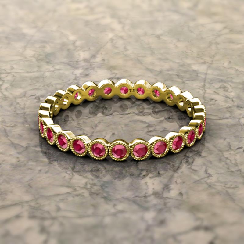 Ruby Bezel Set Milgrain Womens Eternity Ring Stackable 0.95 ctw* 10K Yellow Gold More Details ...