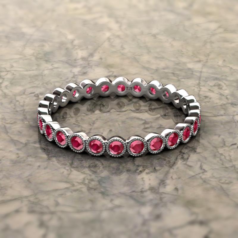 Ruby Bezel Set Milgrain Womens Eternity Ring Stackable 0.95 ctw* Sterling Silver More Details ...