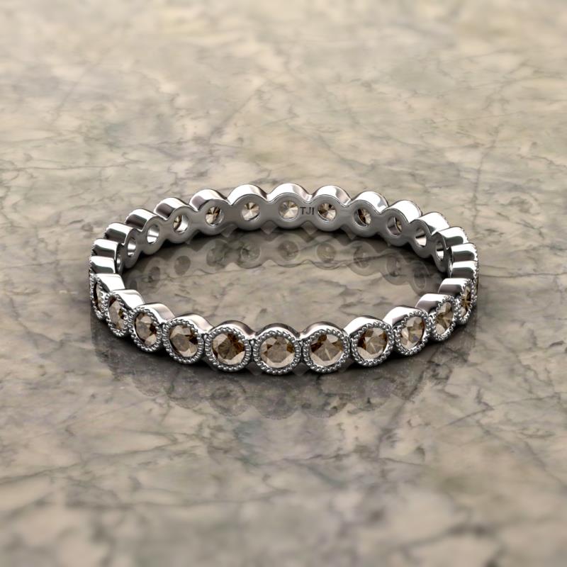 Smoky Quartz Bezel Set Milgrain Womens Eternity Ring Stackable 0.90 ctw* 10K White Gold More Details ...