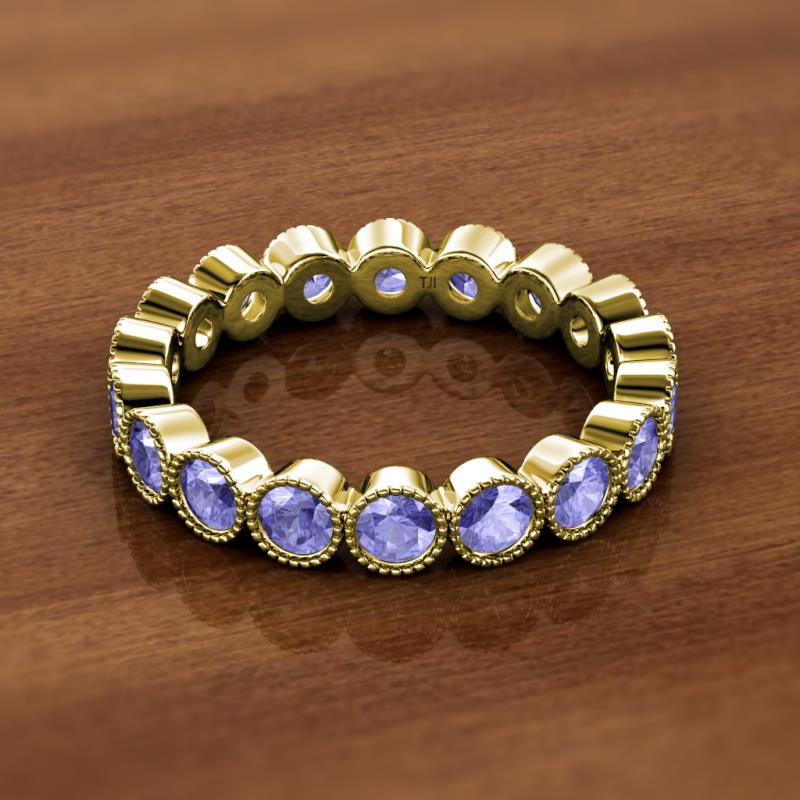 Tanzanite Bezel Set Milgrain Womens Eternity Ring Stackable 1.53 ctw* 18K Yellow Gold More Details ...