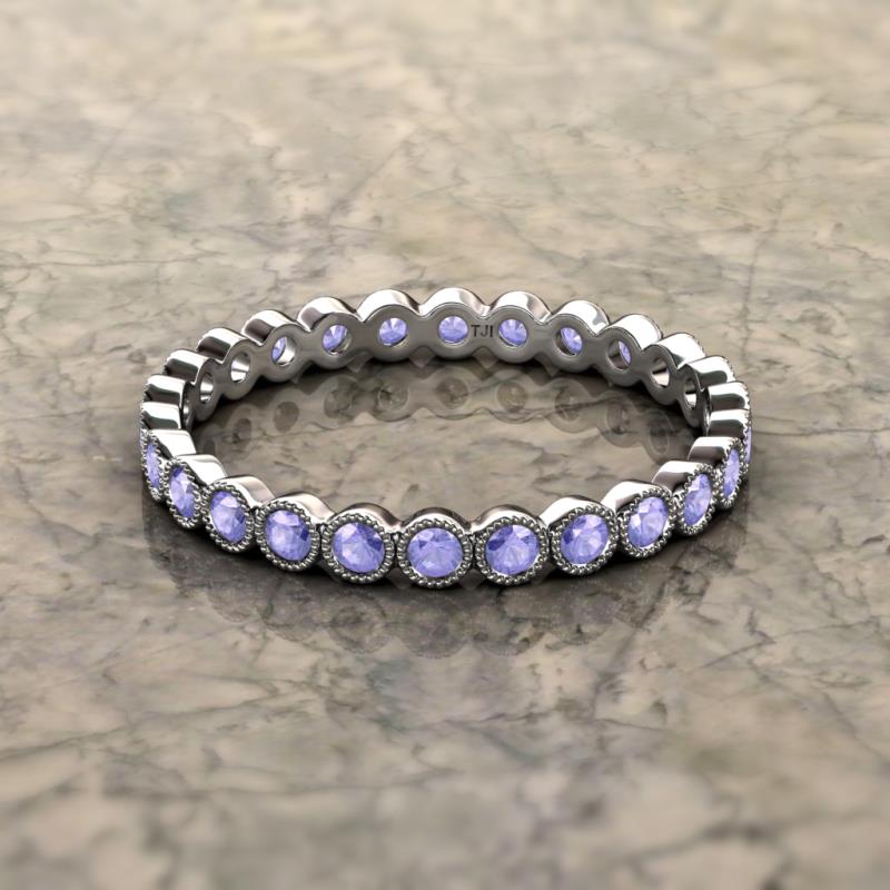 Tanzanite Bezel Set Milgrain Womens Eternity Ring Stackable 0.90 ctw* Sterling Silver More Details ...