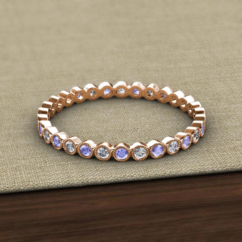 Tanzanite and Lab Grown Diamond Bezel Set Milgrain Womens Eternity Ring Stackable 0.64 ctw* 10K Rose Gold More Details ...