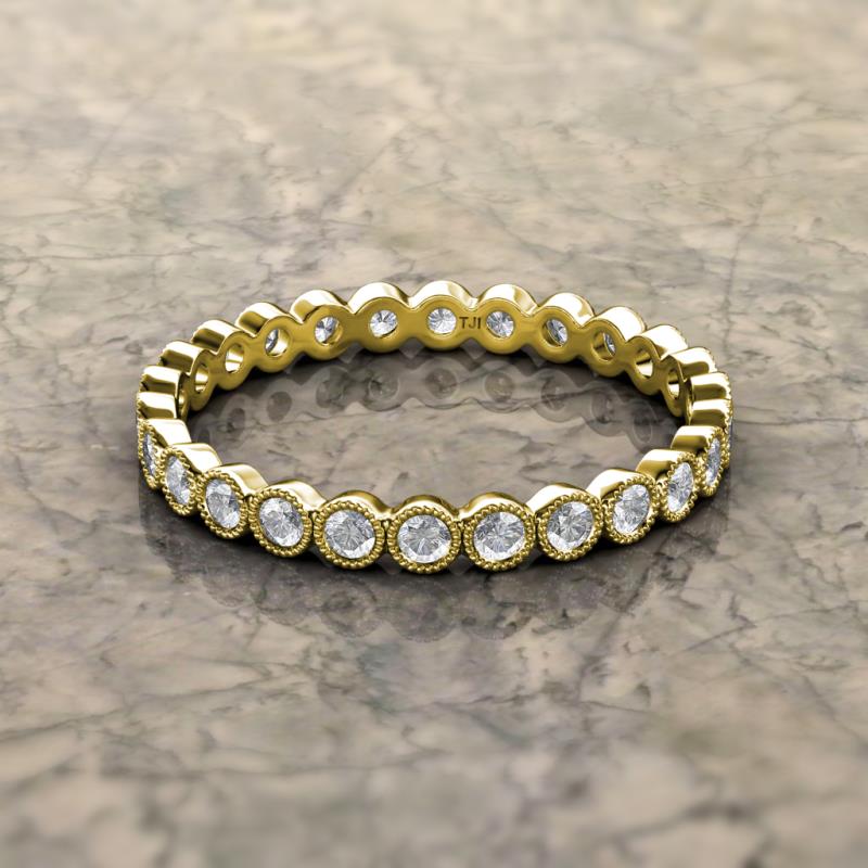 White Sapphire Bezel Set Milgrain Womens Eternity Ring Stackable 0.95 ctw* 10K Yellow Gold More Details ...