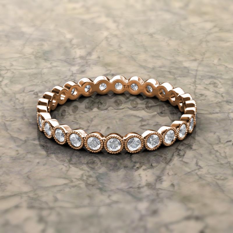 White Sapphire Bezel Set Milgrain Womens Eternity Ring Stackable 0.95 ctw* 10K Rose Gold More Details ...