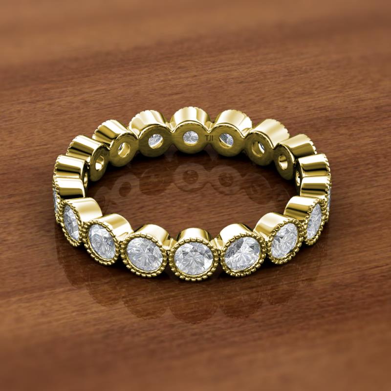 White Sapphire Bezel Set Milgrain Womens Eternity Ring Stackable 1.79 ctw* 10K Yellow Gold More Details ...