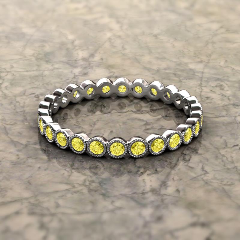Yellow Sapphire Bezel Set Milgrain Womens Eternity Ring Stackable 0.95 ctw* Platinum More Details ...
