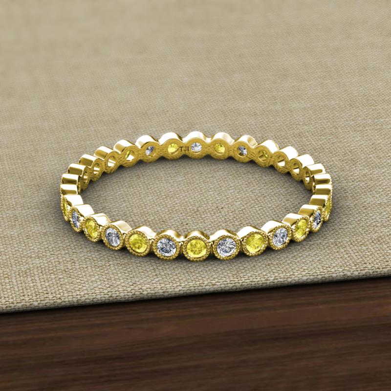 Yellow Sapphire and Diamond Bezel Set Milgrain Womens Eternity Ring Stackable 0.68 ctw* 14K Yellow Gold More Details ...