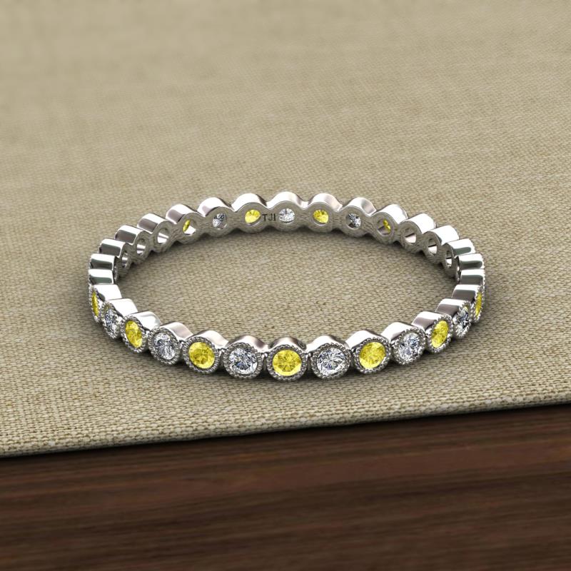 Yellow Sapphire and Diamond Bezel Set Milgrain Womens Eternity Ring Stackable 0.68 ctw* Sterling Silver More Details ...