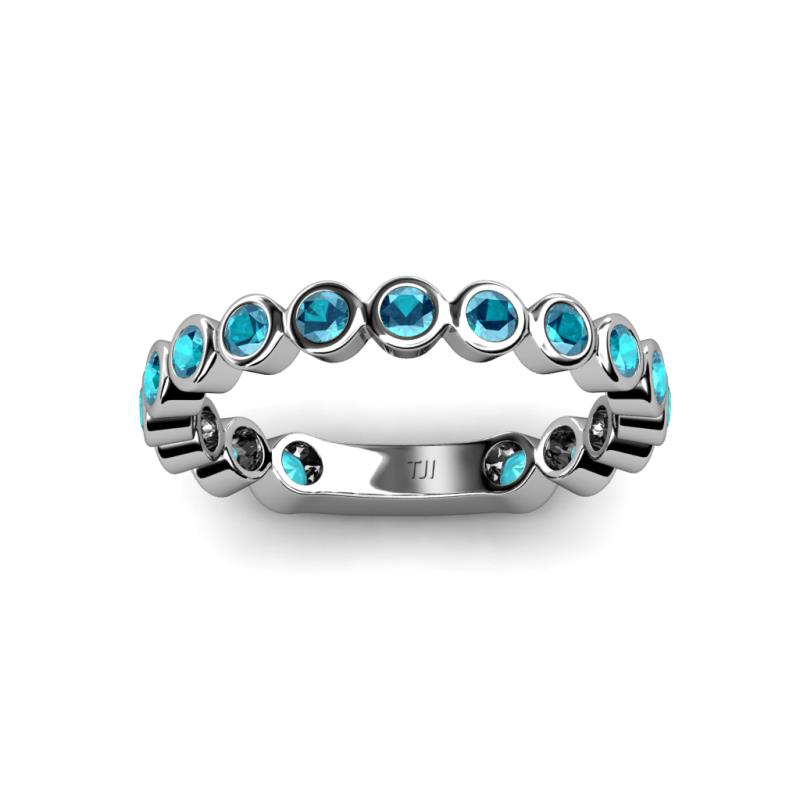 London Blue Topaz Bezel Set Womens Three Quarter Eternity Ring Stackable 0.77 ctw 10K White Gold More Details ...