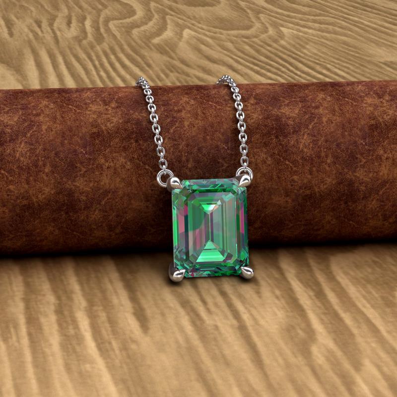 1.95 ct Created Alexandrite Emerald Shape (8x6 mm) Women Solitaire Pendant Necklace 18K White Gold. Included 16 Inches 18K White Gold Chain. More Details ...