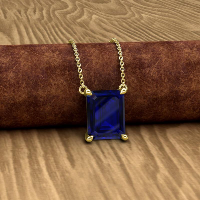 2.85 ct Created Blue Sapphire Emerald Shape (9x7 mm) Women Solitaire Pendant Necklace 18K Yellow Gold. Included 16 Inches 18K Yellow Gold Chain. More Details ...