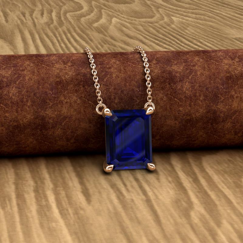 2.85 ct Created Blue Sapphire Emerald Shape (9x7 mm) Women Solitaire Pendant Necklace 18K Rose Gold. Included 16 Inches 18K Rose Gold Chain. More Details ...