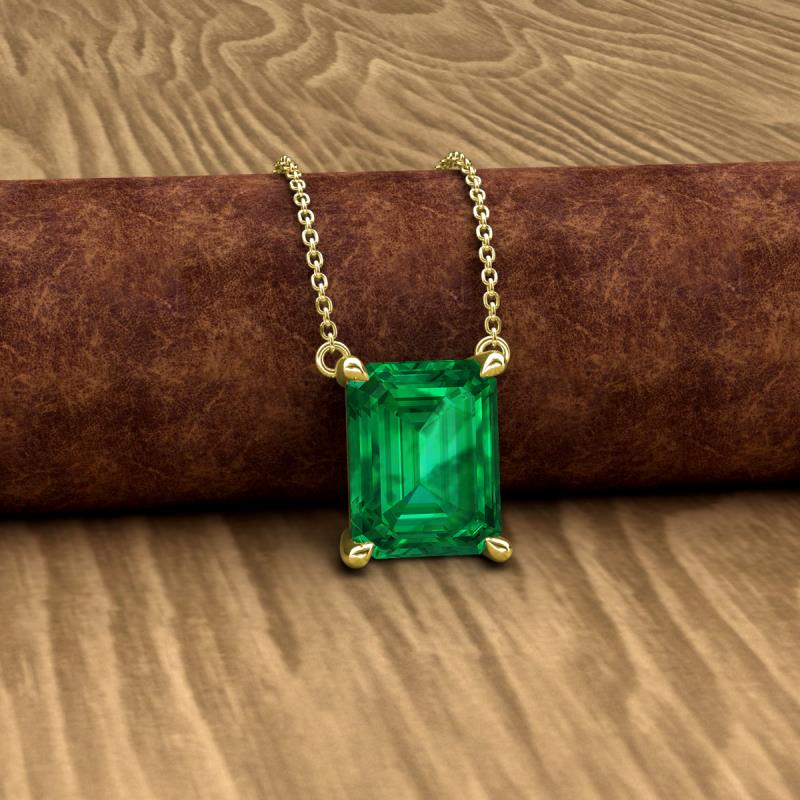 1.35 ct Created Emerald Emerald Shape (8x6 mm) Women Solitaire Pendant Necklace 14K Yellow Gold. Included 16 Inches 14K Yellow Gold Chain. More Details ...